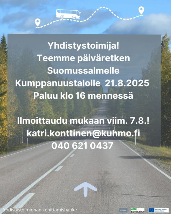 Tervetuloa mukaan päiväretkelle tutustumaan Kumppanuustalon toimintaan Suomussalmelle 21.8.