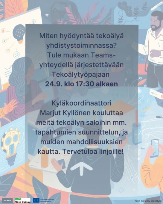 Tänään 24.9. Tekoälytyöpaja yhdistystoimijoille Teamsissa klo 17:30-19