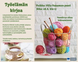 Työelämän kirjoa- tilaisuus kaikille työelämässä toimijoille to 28.8. klo 17 Villa Vanamossa
