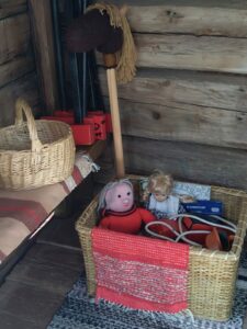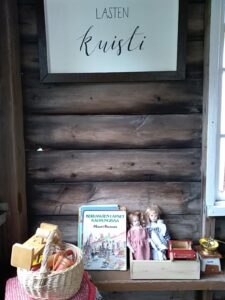 Sivurakennuksen lasten kuistilla on kiva leikkiä aurinkoisina ja sadepäivinä.