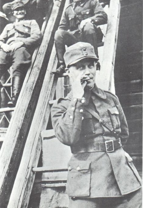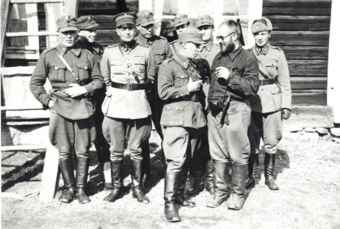 Kuvissa sotilaita välirauhan aikana Tuupalan päärakennuksen edessä.