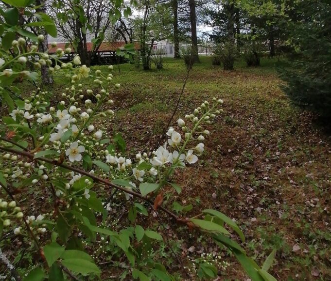 Pihapuutarhassa kasvaa pihlajia, koiranheisipuita, ruusuja, vuorenkilpiä, palavaa rakkautta ja särkynyttä sydäntä.