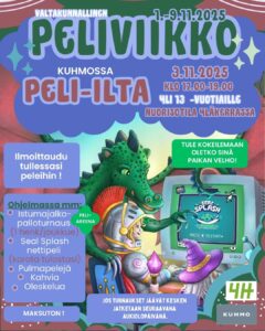 – nettipohjaista Seal Plash peliä jossa voi tulostaan koittaa parantaa aina niin kauan kuin peliviikko kestää. Eli kaikkina nuorisotilan aukioloaikoina. Kuhmon osalta peli aloitetaan tässä tapahtumassa.