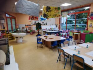 Aloitimme torstaina tutustumiskierroksen aivan pienten parista, de la crèche de Boulazac’sta, ”taimitarhasta”. Tutustumiskohteessamme tarjotaan päivähoitoa aivan pienimmille lapsille kolmesta kuukaudesta kolmeen ikävuoteen saakka. Tarhassa toimii neljä ryhmää, joissa lapsia voi olla hoidossa 72. Henkilöstömitoitus on Ranskassa Suomea hieman korkeampi. Yhtä hoitajaa kohden alle 3-vuotiaita lapsia voi olla kuusi meidän neljän sijaan. Myös henkilöstön koulutus eroaa Suomen varhaiskasvatuksesta opettajien puuttuessa ryhmästä.