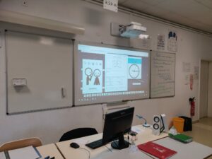 Vierailimme myös espanjan oppitunnilla, jossa oppilaat olivat ryhmissä ratkaisemassa historiallista kirjainarvoitusta. Vertailimme espanjan kielen opettajan kanssa oppituntien valmisteluun käytettävää aikaa ja keskustelimme opetusvelvollisuustyöajasta. Oppilaat suhtautuivat innolla meidän tapaamiseemme, ja vuorovaikutus tapahtui pääasiassa englannin kielellä, mutta puhuimme myös ranskaa.