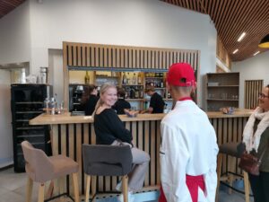 Aloitimme oppilaitokseen tutustumisen ammatillisten opintojen puolelta. Koulupolku toiseen oppilaitokseen vaikuttaa melko samalta kuin Suomessakin. Kaikki eivät pääse haluamalleen linjalle tai kouluun, mutta opinnot on aloitettava ja päästävä opinnoissa alkuun. Meidät vastaanotti innostunut ravintola-alan opiskelijoiden ryhmä, joka valmisteli vierailijoille kahvit ja vastaanotti meidät koulun tiloihin varsin ystävällisesti. Yhden opiskelijan tarina jäi mieleen – hän ei ollut halunnut aloittaa opintoja linjallaan, mutta vaikutti kuitenkin tyytyväiseltä osana ryhmää. Opiskelijat kertovat, että opinnot ovat hyvin käytännönläheisiä. Linjan vetäjien mukaan vaihdos oppilaitosten välillä on mahdollista kesken lukuvuoden. Opiskelijat saavat siis opintoihinsa ohjausta hyvin eri tasoilta.